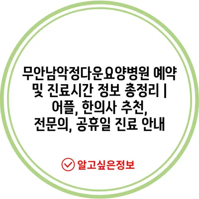 ✅ 무안남악정다운요양병원 예약 방법과 진료 시간을 확인해 보세요!
