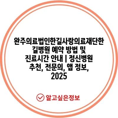 완주의료법인한길사랑의료재단한길병원 예약 방법 및 진료시간 공지 | 정신병원 추천, 전연락, 앱 정보, 2025 에 대해 자주 묻는 질문 TOP 5