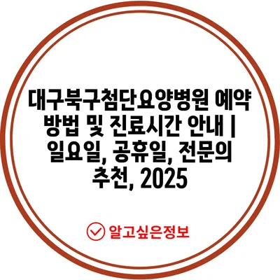 대구북구첨단요양병원 예약 방법 및 진료시간 공지 | 일요일, 공휴일, 전연락 추천, 2025에 대해 알아보겠습니다.