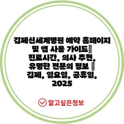 김제신세계병원 예약 홈페이지 및 앱 사용 설명서| 진료시간, 의사 추천, 유명한 전연락 정보 | 김제, 일요일, 공휴일, 2025에 대해 알아보겠습니다.