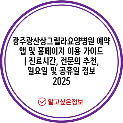광주광산상그릴라요양병원 예약 앱 및 홈페이지 이용 가이드 | 진료시간, 전문의 추천, 일요일 및 공휴일 정보 2025