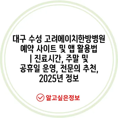 대구 수성 고려에이치한방병원 예약 사이트 및 앱 활용법 | 진료시간, 주말 및 공휴일 운영, 전연락 추천, 2025년 정보 에 대해 자주 묻는 질문 TOP 5