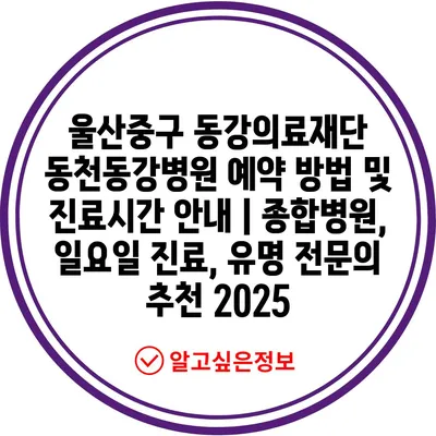울산중구 동강의료재단 동천동강병원 예약 방법 및 진료시간 공지 | 종합병원, 일요일 진료, 유명 전연락 추천 2025 에 대해 자주 묻는 질문 TOP 5