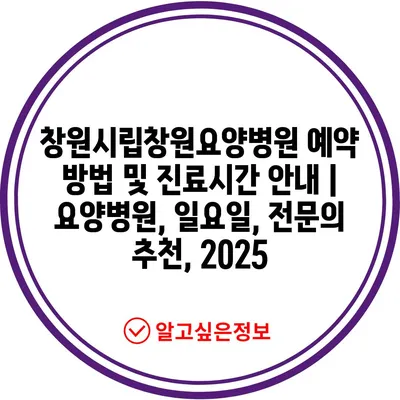 ✅ 창원시립창원요양병원의 예약 방법과 진료시간을 지금 알아보세요!