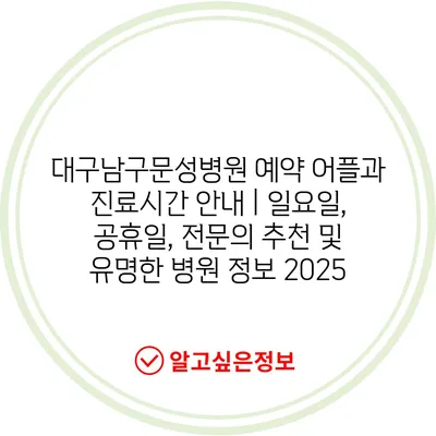 대구남구문성병원 예약 어플과 진료시간 공지 | 일요일, 공휴일, 전연락 추천 및 유명한 병원 정보 2025에 대해 알아보겠습니다.