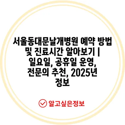 서울동대문날개병원 예약 방법 및 진료시간 알아보기 | 일요일, 공휴일 운영, 전연락 추천, 2025년 정보