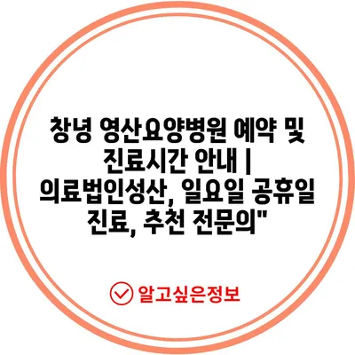 ✅ 창녕 영산요양병원의 진료시간 및 예약 방법을 지금 바로 알아보세요!