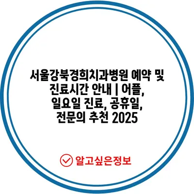✅ 서울강북경희치과병원의 진료시간과 예약 방법을 자세히 알아보세요.
