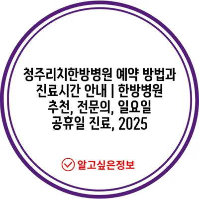 청주리치한방병원 예약 방법과 진료시간 공지 | 한방병원 추천, 전연락, 일요일 공휴일 진료, 2025 에 대해 자주 묻는 질문 TOP 5
