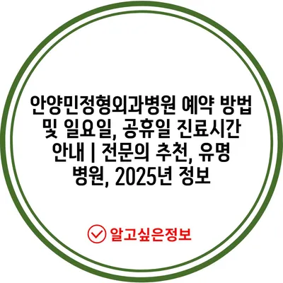 안양민정형외과병원 예약 방법 및 일요일, 공휴일 진료시간 공지 | 전연락 추천, 유명 병원, 2025년 정보 에 대해 자주 묻는 질문 TOP 5