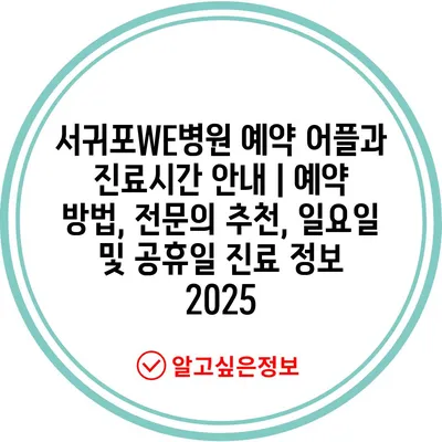 ✅ 서귀포WE병원 예약 방법과 진료시간을 지금 바로 확인하세요!