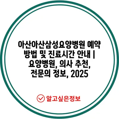 아산아산삼성요양병원 예약 방법 및 진료시간 공지 | 요양병원, 의사 추천, 전연락 정보, 2025 에 대해 자주 묻는 질문 TOP 5
