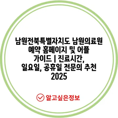 남원전북특별자치도 남원의료원 예약 홈페이지 및 어플 설명서 | 진료시간, 일요일, 공휴일 전연락 추천 2025에 대해 알아보겠습니다.