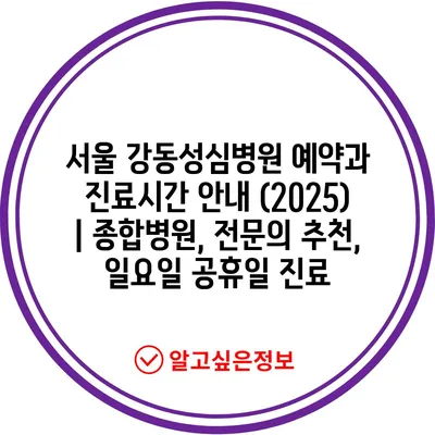 ✅ 서울 강동성심병원의 진료시간과 예약 방법을 자세히 알아보세요.