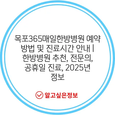 ✅ 목포365매일한방병원의 예약 방법과 진료 시간을 자세히 알아보세요.