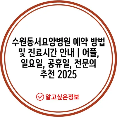 수원동서요양병원 예약 방법 및 진료시간 안내 | 어플, 일요일, 공휴일, 전문의 추천 2025