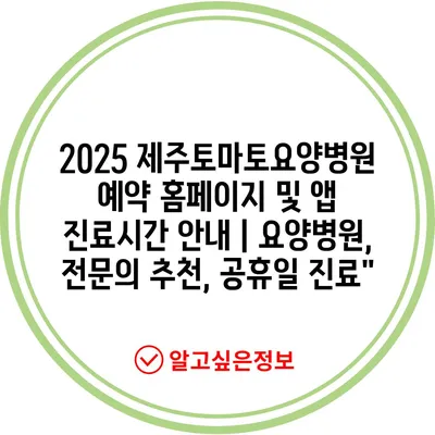 2025 제주토마토요양병원 예약 홈페이지 및 앱 진료시간 안내 | 요양병원, 전문의 추천, 공휴일 진료”
