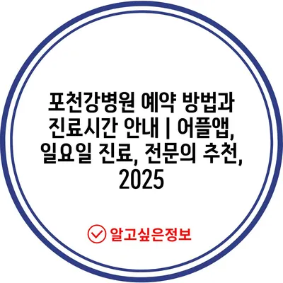포천강병원 예약 방법과 진료시간 안내 | 어플앱, 일요일 진료, 전문의 추천, 2025