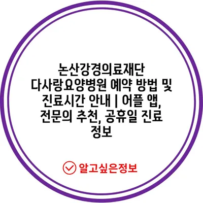 논산강경의료재단 다사랑요양병원 예약 방법 및 진료시간 안내 | 어플 앱, 전문의 추천, 공휴일 진료 정보