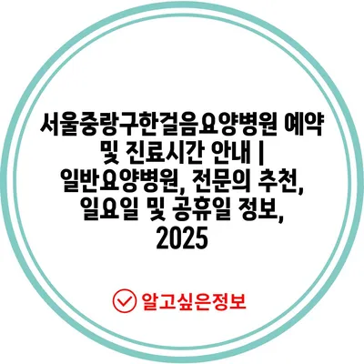 서울중랑구한걸음요양병원 예약 및 진료시간 안내 | 일반요양병원, 전문의 추천, 일요일 및 공휴일 정보, 2025