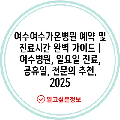 여수여수가온병원 예약 및 진료시간 완벽 가이드 | 여수병원, 일요일 진료, 공휴일, 전문의 추천, 2025