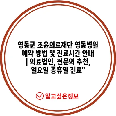 영동군 조윤의료재단 영동병원 예약 방법 및 진료시간 안내 | 의료법인, 전문의 추천, 일요일 공휴일 진료”