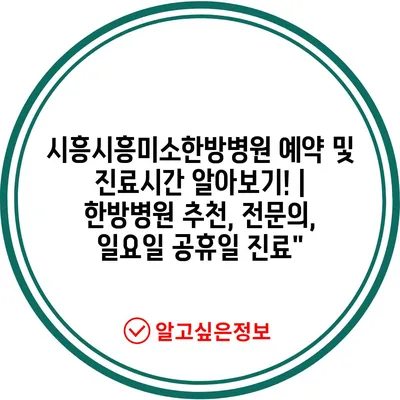 시흥시흥미소한방병원 예약 및 진료시간 알아보기! | 한방병원 추천, 전문의, 일요일 공휴일 진료”