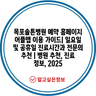 목포솔튼병원 예약 홈페이지 어플앱 이용 가이드| 일요일 및 공휴일 진료시간과 전문의 추천 | 병원 추천, 진료 정보, 2025