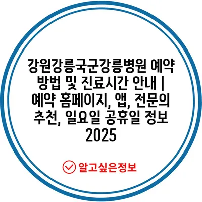강원강릉국군강릉병원 예약 방법 및 진료시간 안내 | 예약 홈페이지, 앱, 전문의 추천, 일요일 공휴일 정보 2025