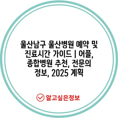 울산남구 울산병원 예약 및 진료시간 가이드 | 어플, 종합병원 추천, 전문의 정보, 2025 계획