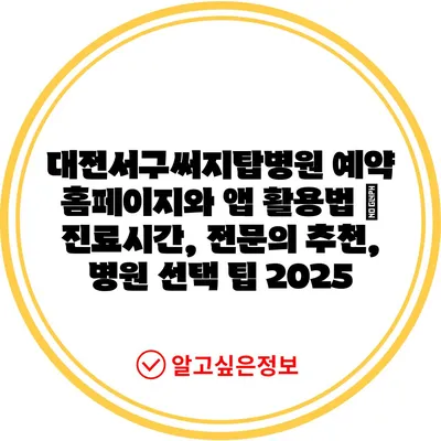 대전서구써지탑병원 예약 홈페이지와 앱 활용법 | 진료시간, 전문의 추천, 병원 선택 팁 2025