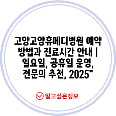 고양고양휴메디병원 예약 방법과 진료시간 안내 | 일요일, 공휴일 운영, 전문의 추천, 2025″