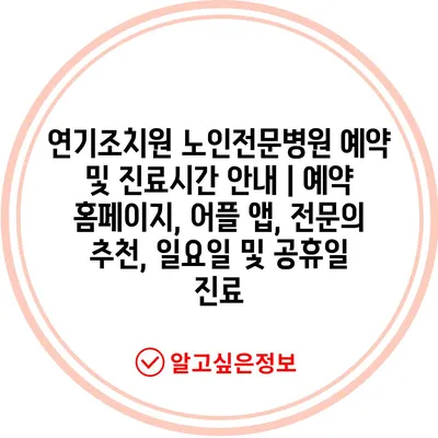 연기조치원 노인전문병원 예약 및 진료시간 안내 | 예약 홈페이지, 어플 앱, 전문의 추천, 일요일 및 공휴일 진료
