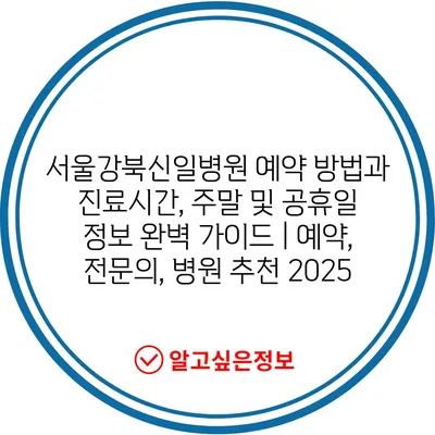 서울강북신일병원 예약 방법과 진료시간, 주말 및 공휴일 정보 완벽 가이드 | 예약, 전문의, 병원 추천 2025