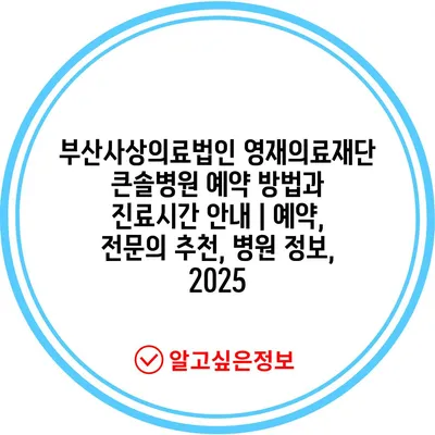 부산사상의료법인 영재의료재단 큰솔병원 예약 방법과 진료시간 안내 | 예약, 전문의 추천, 병원 정보, 2025
