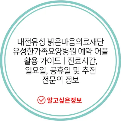 대전유성 밝은마음의료재단 유성한가족요양병원 예약 어플 활용 가이드 | 진료시간, 일요일, 공휴일 및 추천 전문의 정보