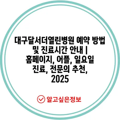 대구달서더열린병원 예약 방법 및 진료시간 안내 | 홈페이지, 어플, 일요일 진료, 전문의 추천, 2025