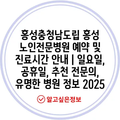 홍성충청남도립 홍성 노인전문병원 예약 및 진료시간 안내 | 일요일, 공휴일, 추천 전문의, 유명한 병원 정보 2025