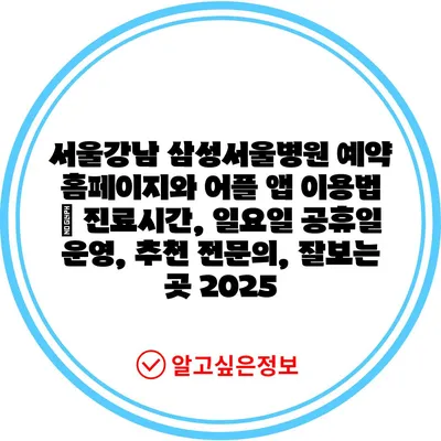 서울강남 삼성서울병원 예약 홈페이지와 어플 앱 이용법 | 진료시간, 일요일 공휴일 운영, 추천 전문의, 잘보는 곳 2025