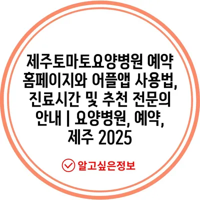 제주토마토요양병원 예약 홈페이지와 어플앱 사용법, 진료시간 및 추천 전문의 안내 | 요양병원, 예약, 제주 2025