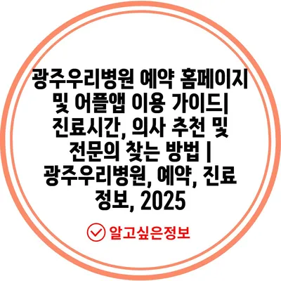 광주우리병원 예약 홈페이지 및 어플앱 이용 가이드| 진료시간, 의사 추천 및 전문의 찾는 방법 | 광주우리병원, 예약, 진료 정보, 2025