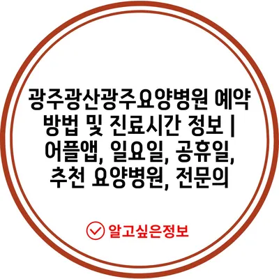 광주광산광주요양병원 예약 방법 및 진료시간 정보 | 어플앱, 일요일, 공휴일, 추천 요양병원, 전문의