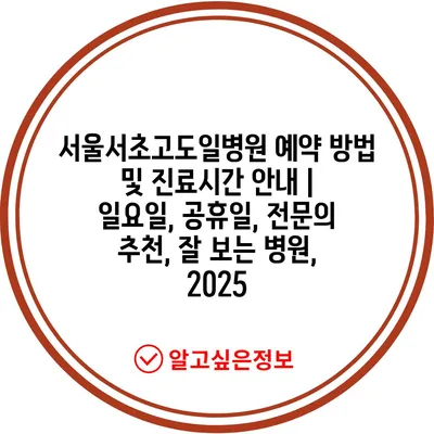 서울서초고도일병원 예약 방법 및 진료시간 안내 | 일요일, 공휴일, 전문의 추천, 잘 보는 병원, 2025