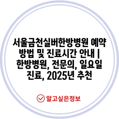 서울금천실버한방병원 예약 방법 및 진료시간 안내 | 한방병원, 전문의, 일요일 진료, 2025년 추천