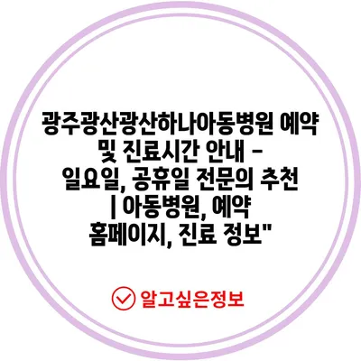 광주광산광산하나아동병원 예약 및 진료시간 안내 – 일요일, 공휴일 전문의 추천 | 아동병원, 예약 홈페이지, 진료 정보”