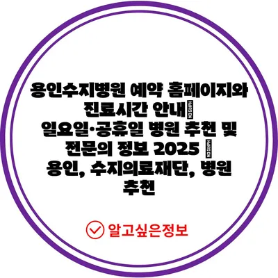 용인수지병원 예약 홈페이지와 진료시간 안내| 일요일·공휴일 병원 추천 및 전문의 정보 2025 | 용인, 수지의료재단, 병원 추천