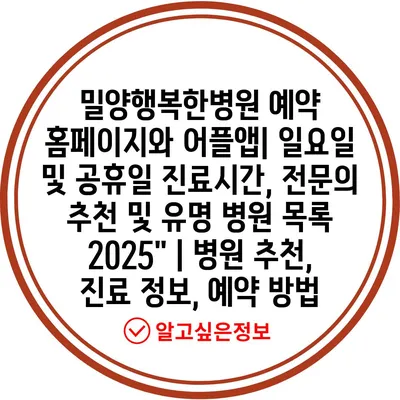밀양행복한병원 예약 홈페이지와 어플앱| 일요일 및 공휴일 진료시간, 전문의 추천 및 유명 병원 목록 2025″ | 병원 추천, 진료 정보, 예약 방법