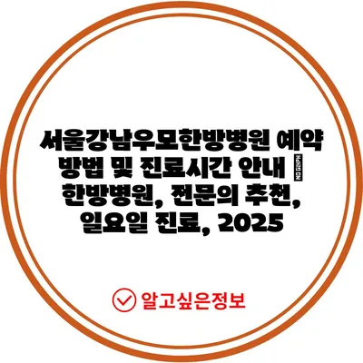 서울강남우모한방병원 예약 방법 및 진료시간 안내 | 한방병원, 전문의 추천, 일요일 진료, 2025