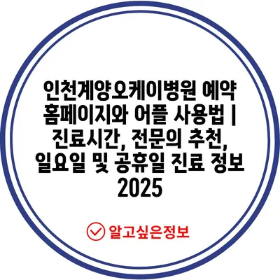 인천계양오케이병원 예약 홈페이지와 어플 사용법 | 진료시간, 전문의 추천, 일요일 및 공휴일 진료 정보 2025