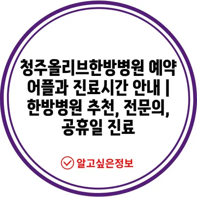 청주올리브한방병원 예약 어플과 진료시간 안내 | 한방병원 추천, 전문의, 공휴일 진료